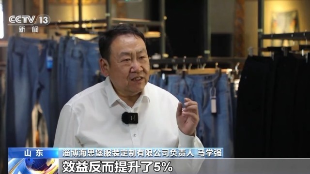 海思堡服拆定制无限公司担任人 马学强:牛仔服拆的价钱不降反升,比拟原先出口美国市场,效益反而提拔了5%。